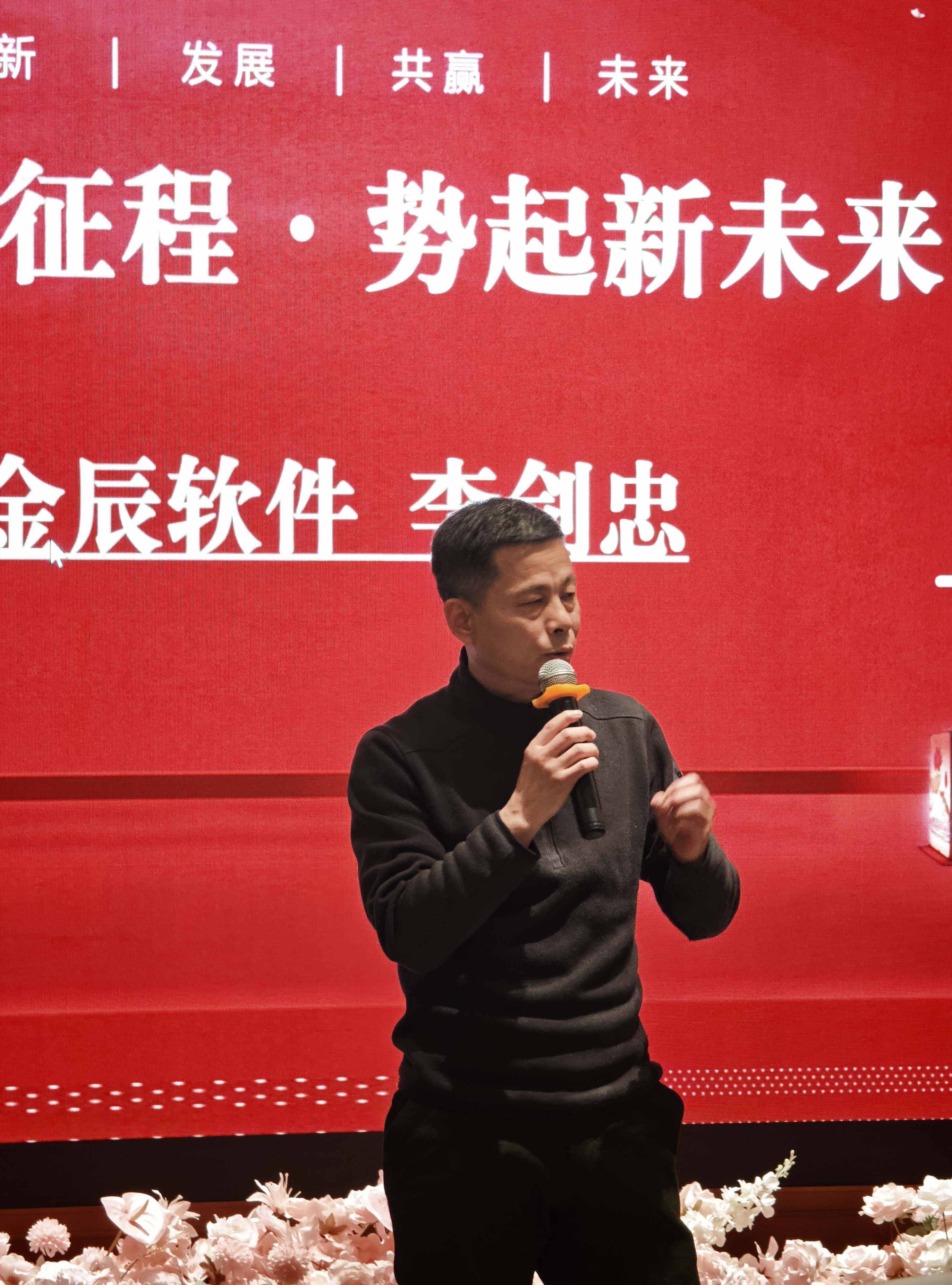 視頻過(guò)后,倪總登臺(tái)為年會(huì)致辭,既對(duì)公司 2025 年的發(fā)展成果進(jìn)行了全面總結(jié),肯定了全體員工的辛勤付出與不懈堅(jiān)守,也為 2026 年的發(fā)展擘畫了美好藍(lán)圖,提出了新的期許與要求。隨后,李劍忠李總發(fā)表致辭,樸實(shí)的話語(yǔ)中滿是對(duì)團(tuán)隊(duì)的認(rèn)可與關(guān)懷,為全體金辰人新一年的奮斗指明了方向。兩位領(lǐng)導(dǎo)的致辭振奮人心、催人奮進(jìn),讓現(xiàn)場(chǎng)員工深受鼓舞,陣陣熱烈的掌聲在會(huì)場(chǎng)久久回蕩。