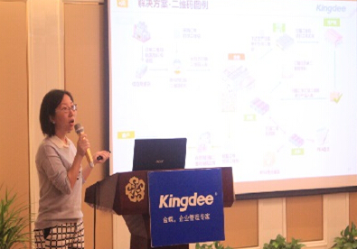 在新的形勢下,支撐企業(yè)管理的核心系統(tǒng)ERP充分利用了互聯(lián)網(wǎng)+技術(shù),強化了“連接、智能、創(chuàng)新”三大特性的ERP升級,將重新煥發(fā)青春,從重點關(guān)注內(nèi)部管理利用互聯(lián)網(wǎng)+重新武裝。那么,企業(yè)究竟該如何順應互聯(lián)網(wǎng)+這個潮流,走向更大的成功呢?接下來金華金辰軟件有限公司的高級售前顧問鄭佳老師并給在座的所有企業(yè)代表詳細地介紹了管理升級中金蝶提出的兩大信息化解決方案,二維碼解決方案和云之家移動應用解決方案。在座的客戶聽完以后都頻頻點頭和拍照。