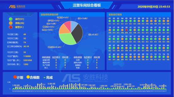 廠長(zhǎng)坦言:“上線前,70多臺(tái)注塑機(jī),6條產(chǎn)線,每天解決完問(wèn)題最起碼要在晚上10點(diǎn)以后了,而一天中至少花費(fèi)4個(gè)小時(shí)尋找問(wèn)題。“ 上線20天后,廠長(zhǎng)又說(shuō):“現(xiàn)在每天大部分時(shí)間,只要坐辦公室監(jiān)看車(chē)間生產(chǎn)設(shè)備看板,工單異常看板等等各種看板數(shù)據(jù),就能發(fā)現(xiàn)問(wèn)題,并及時(shí)找責(zé)任人解決。”