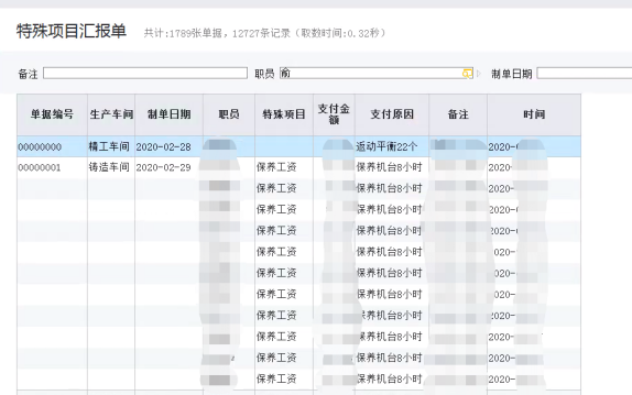 除車間的工序匯報(bào)以外,針對(duì)辦公室或其他獎(jiǎng)勵(lì)等機(jī)制的工資錄入,通過(guò)特殊項(xiàng)目匯報(bào)單進(jìn)行工資匯報(bào),單據(jù)中的項(xiàng)目可自定義,及時(shí)形成對(duì)應(yīng)的工資表。