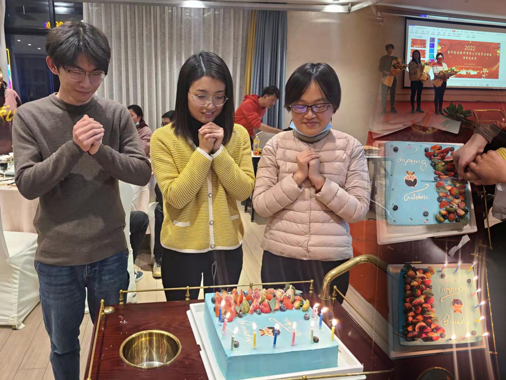 在辭舊迎新的一月份,公司為三位壽星安排了一個特別的生日會,隨著緩緩?fù)迫霑龅牡案?,三位壽星在大家的歌聲中許下愿望,把年會推上了一個新的“小高潮”。