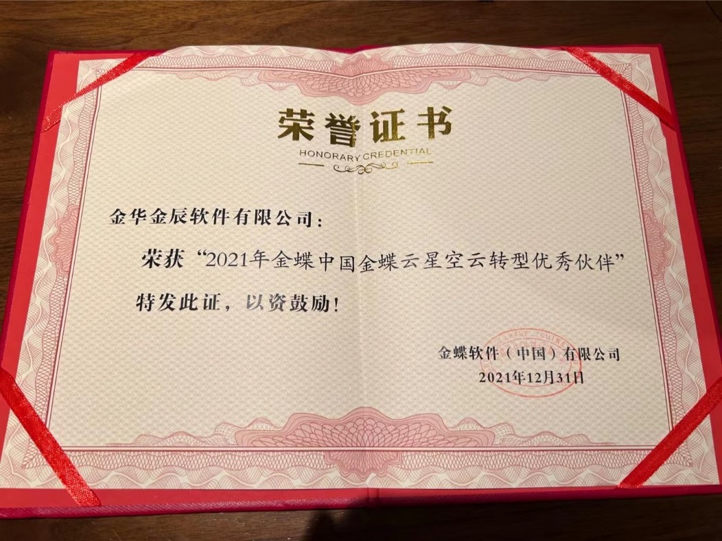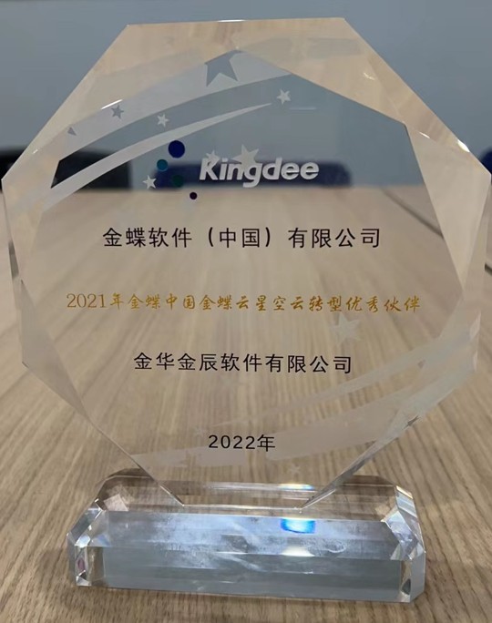 金華金辰軟件有限公司榮獲金蝶集團“2021年金蝶中國云轉(zhuǎn)型優(yōu)秀伙伴”的榮譽!